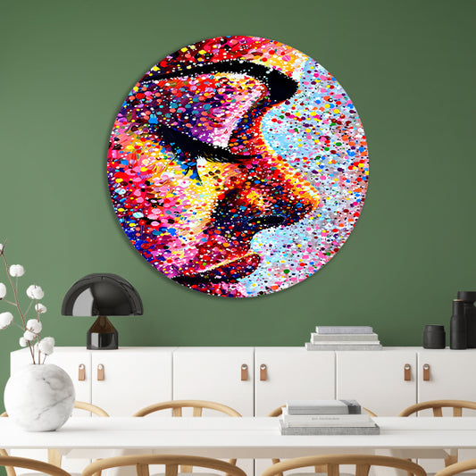 Kleurrijk abstract portret van een gezicht aluminium muurcirkel