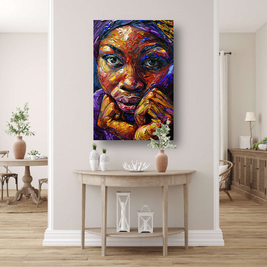 Kleurrijk abstract portret van Afrikaanse vrouw canvas
