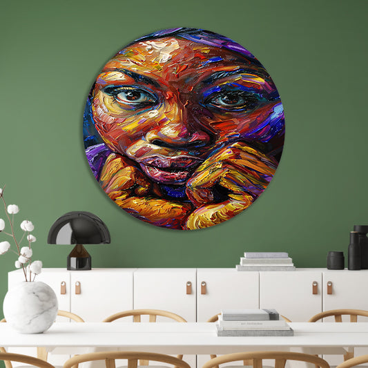 Kleurrijk abstract portret van Afrikaanse vrouw aluminium muurcirkel