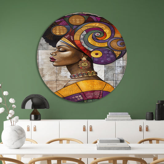 Kleurrijk abstract portret van Afrikaanse vrouw forex muurcirkel