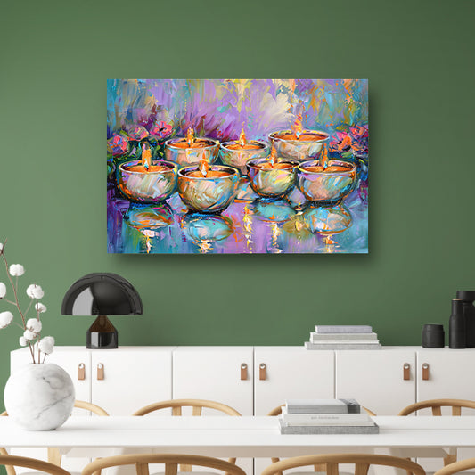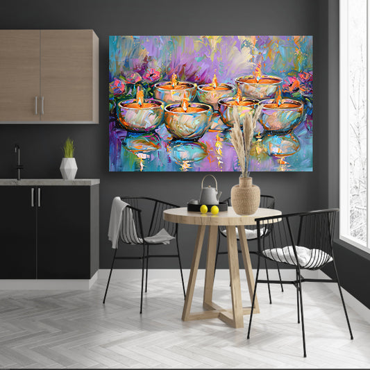 Kleurrijk abstract schilderij van brandende kaarsen canvas