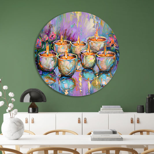 Kleurrijk abstract schilderij van brandende kaarsen forex muurcirkel