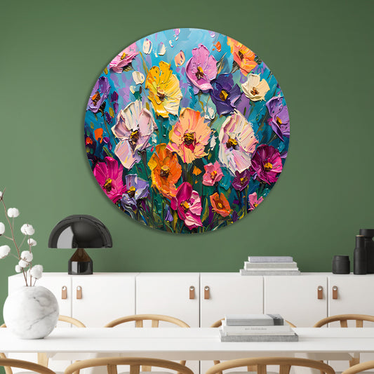 Kleurrijk abstract schilderij van bloemenveld forex muurcirkel