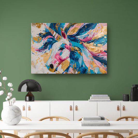 Kleurrijk abstract schilderij van een eenhoorn canvas