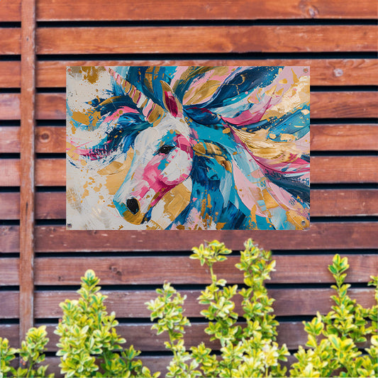 Kleurrijk abstract schilderij van een eenhoorn tuinposter