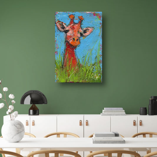 Kleurrijk abstract schilderij van een giraffe canvas met baklijst
