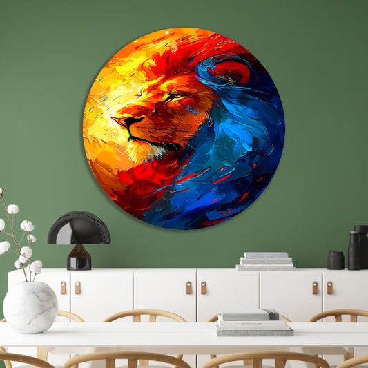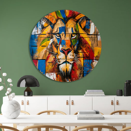 Kleurrijk abstract schilderij van een leeuw aluminium muurcirkel