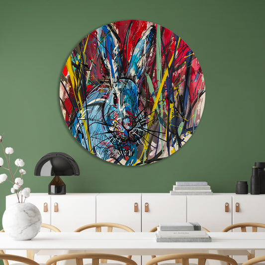 Kleurrijk abstract schilderij van een konijn aluminium muurcirkel