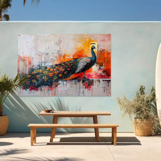 Kleurrijk abstract schilderij van een pauw acrylglas