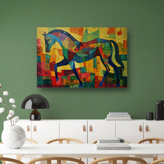 Kleurrijk abstract schilderij van een paard canvas met baklijst