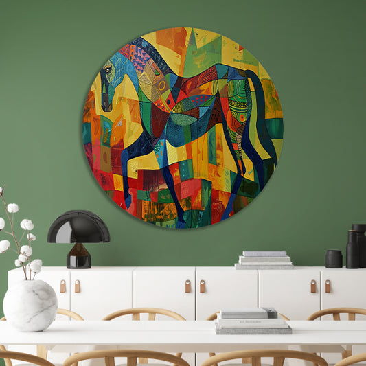 Kleurrijk abstract schilderij van een paard forex muurcirkel