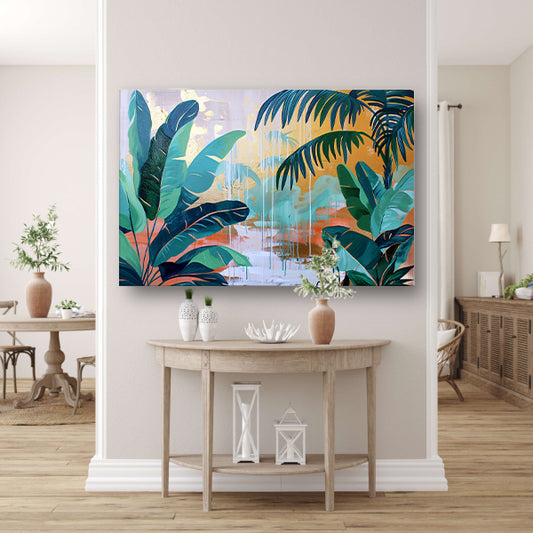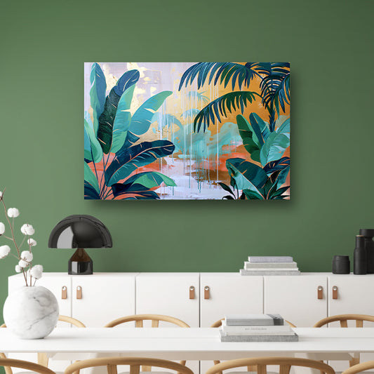Kleurrijk abstract schilderij van een regenwoud canvas