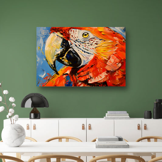 Kleurrijk abstract schilderij van een papegaai canvas met baklijst
