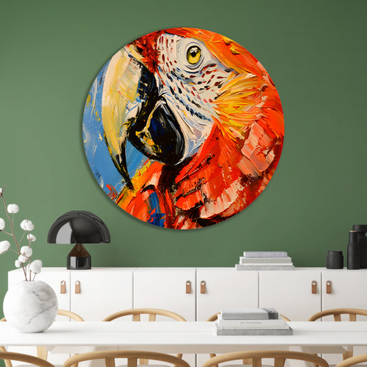 Kleurrijk abstract schilderij van een papegaai aluminium muurcirkel
