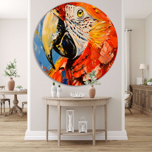 Kleurrijk abstract schilderij van een papegaai forex muurcirkel