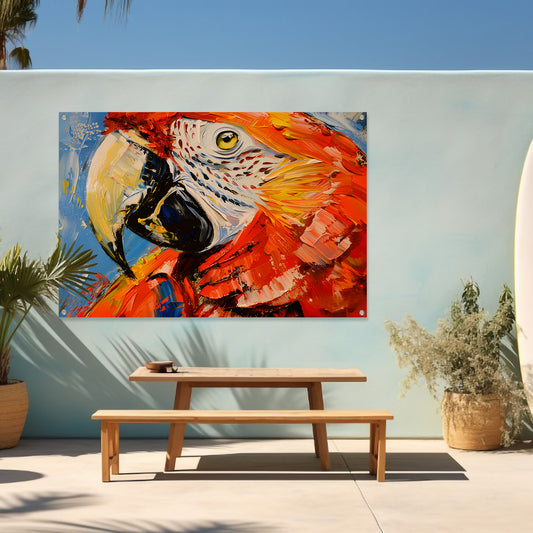Kleurrijk abstract schilderij van een papegaai tuinposter