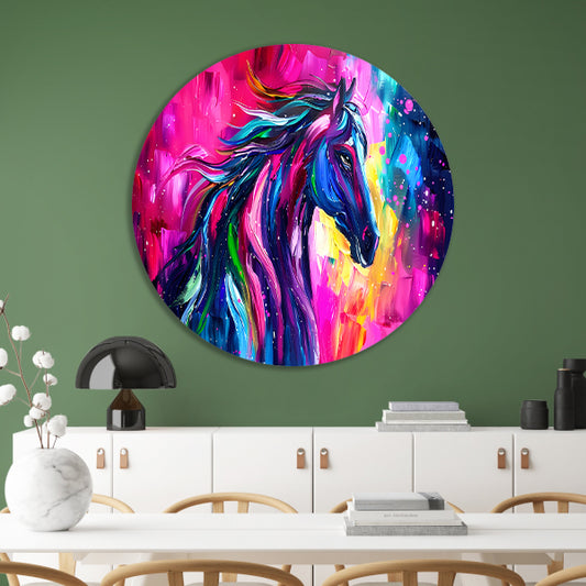 Kleurrijk abstract schilderij van paard forex muurcirkel