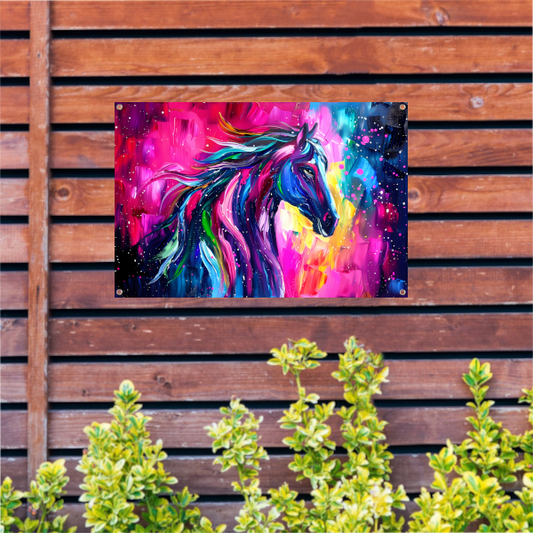 Kleurrijk abstract schilderij van paard tuinposter