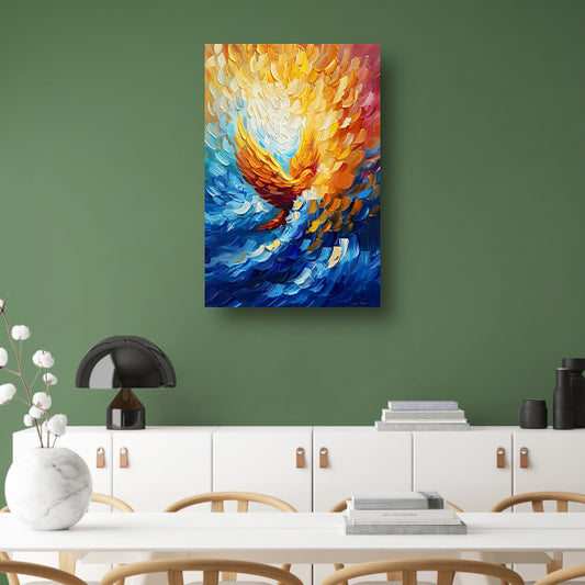 Kleurrijk abstract schilderij van vliegende adelaar canvas met baklijst