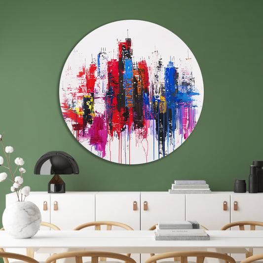 Kleurrijk abstract stadsgezicht op witte achtergrond aluminium muurcirkel