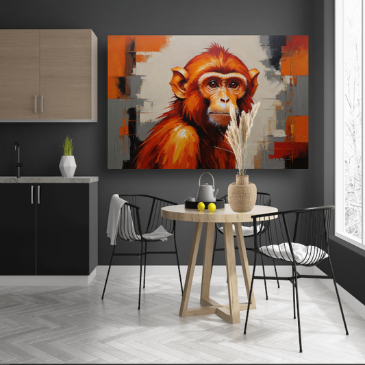 Abstract Oranje Aap in Moderne Kunst canvas met baklijst