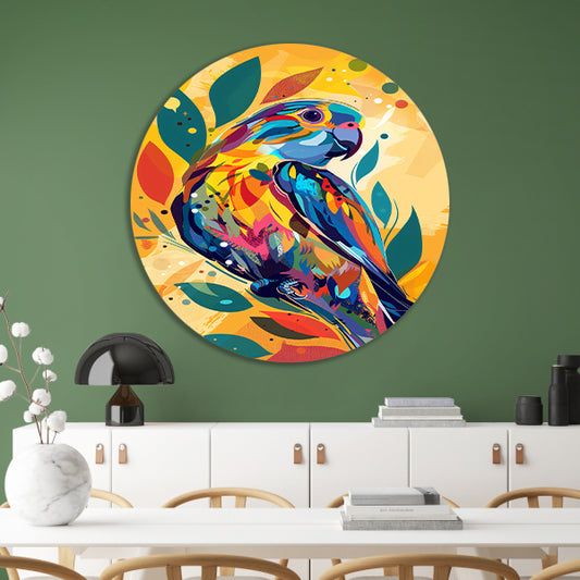 Abstract Papegaai in Kubisme Stijl aluminium muurcirkel