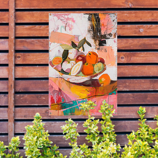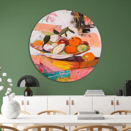 Kleurrijk abstract stilleven met fruit aluminium muurcirkel