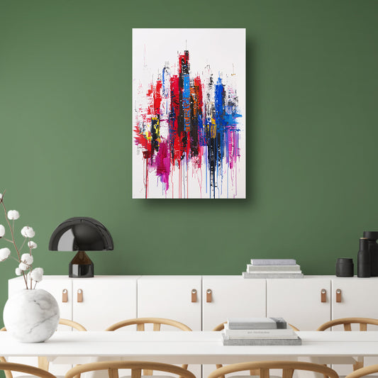Kleurrijk abstract stadsgezicht op witte achtergrond canvas met baklijst