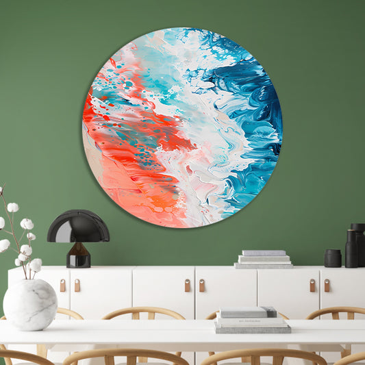 Kleurrijk abstract strandlandschap schilderij aluminium muurcirkel