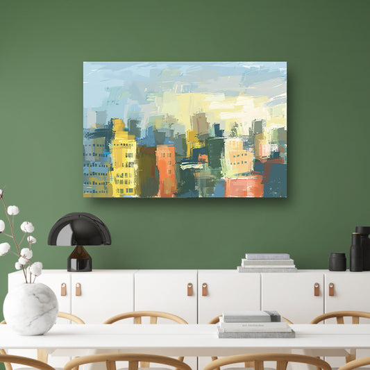 Kleurrijk abstracte skyline schilderij op doek canvas