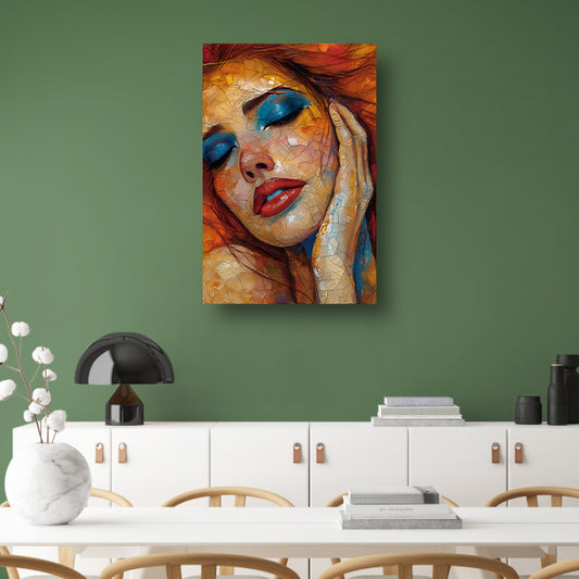 Kleurrijk Abstractie van een Vrouwelijk Gezicht canvas met baklijst