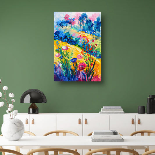 Kleurrijk aquarel van zomerse bloemen en bomen canvas met baklijst