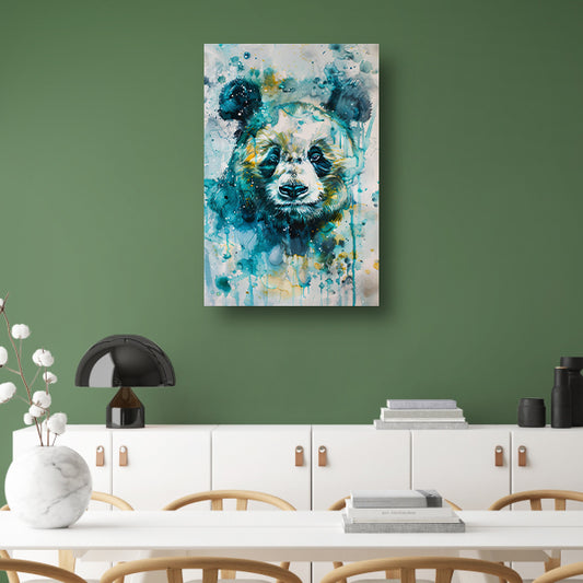 Kleurrijk aquarel schilderij van een panda canvas met baklijst