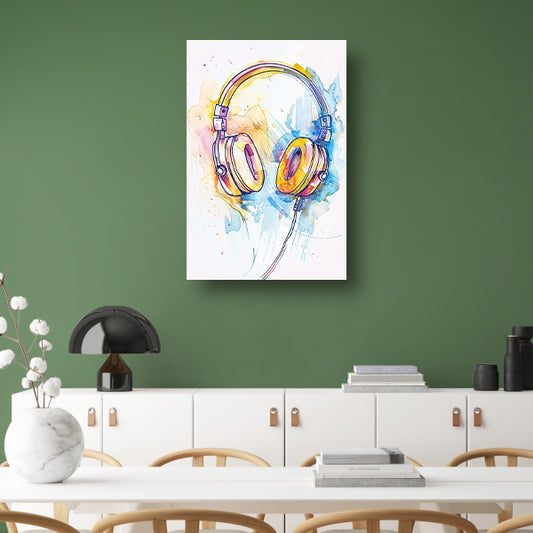 Kleurrijk Aquarel Koptelefoon Kunst canvas met baklijst