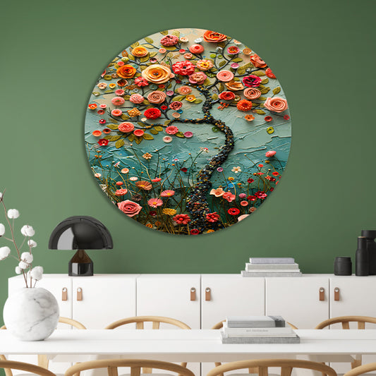 Kleurrijk Bloemenboom Schilderij voor Interieur aluminium muurcirkel