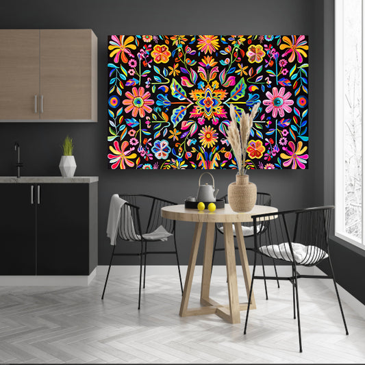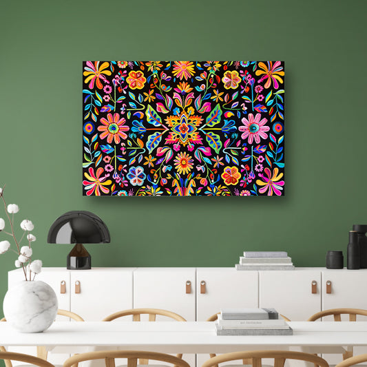 Kleurrijk Bloemenpatroon op Zwarte Achtergrond canvas