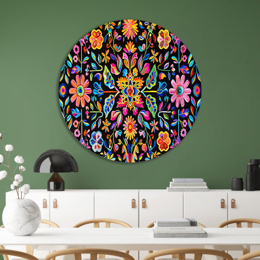 Kleurrijk Bloemenpatroon op Zwarte Achtergrond forex muurcirkel