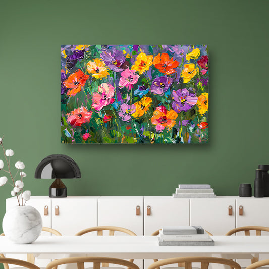 Kleurrijk bloemenveld in expressieve stijl canvas