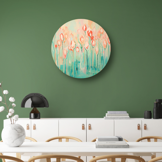 Kleurrijk bloemenveld in expressieve stijl aluminium muurcirkel