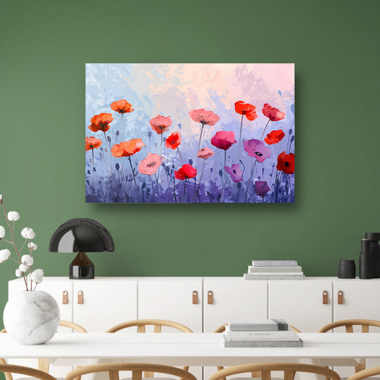 Kleurrijk bloemenveld tegen lichte achtergrond canvas