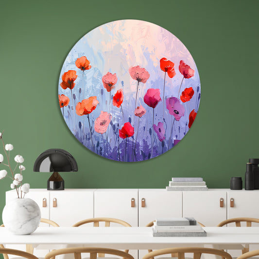 Kleurrijk bloemenveld tegen lichte achtergrond aluminium muurcirkel