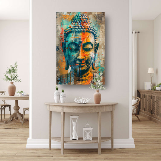 Kleurrijk Boeddha-portret in graffiti-stijl canvas met baklijst
