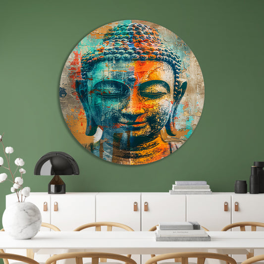 Kleurrijk Boeddha-portret in graffiti-stijl aluminium muurcirkel