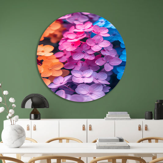 Kleurrijk Bloemenzee in Modern Jasje aluminium muurcirkel