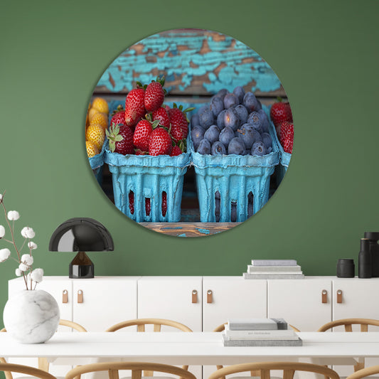 Kleurrijk fruitschaal met aardbeien en blauwe bessen aluminium muurcirkel