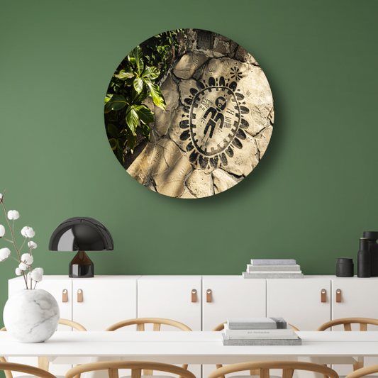 Abstract Gezicht in Geometrische Sepia Tinten aluminium muurcirkel