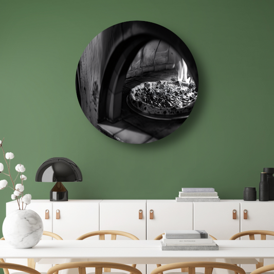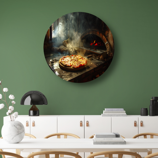 Minimalistische pizzakunst in oven aluminium muurcirkel