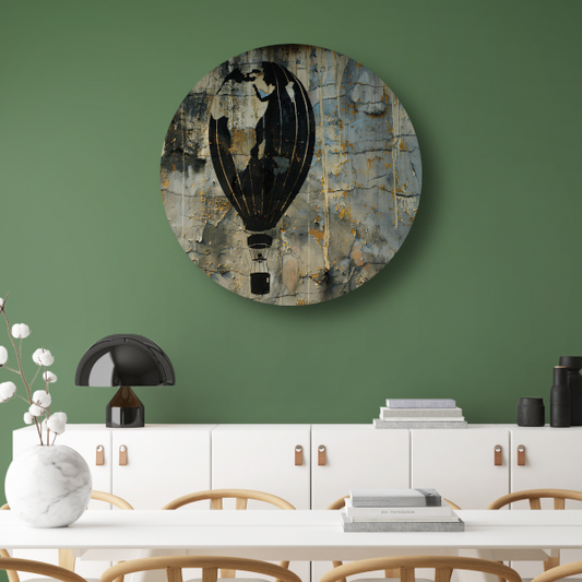 Minimalistische heteluchtballon aan de muur aluminium muurcirkel