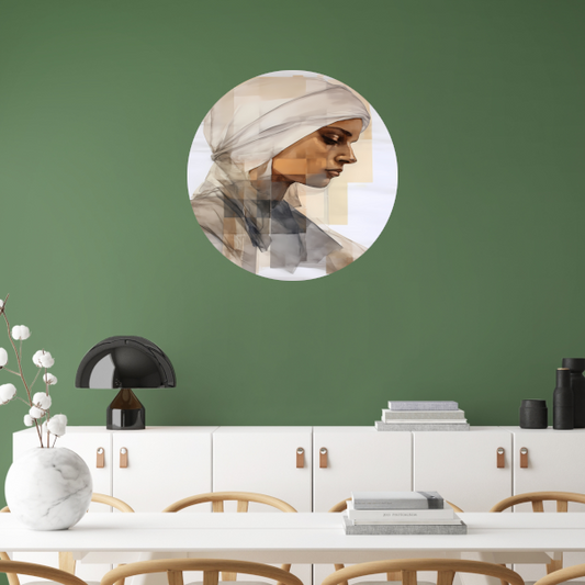 Vrouw in Gedachte met Hoofddoek aluminium muurcirkel