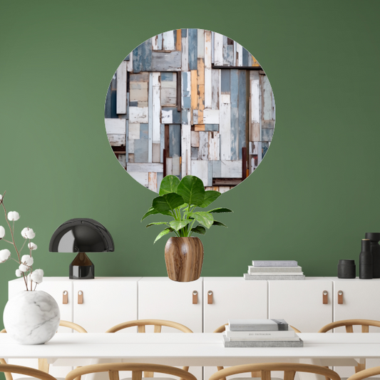 Verweerd Hout Mozaïek in Monochroom aluminium muurcirkel